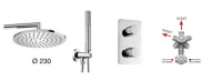 Душевой комплект Bossini COSMO: смеситель на 2 выхода, верхний душ Ø 230 мм, ручной душ ZEN с водорозеткой, шланг 150 см, цвет хром (M00753.030)