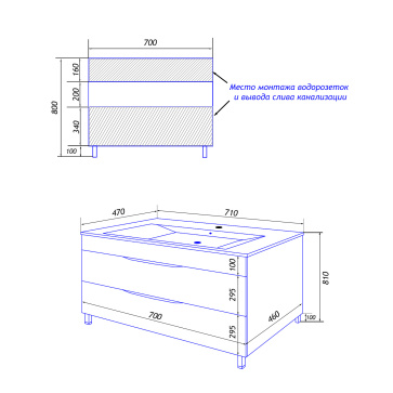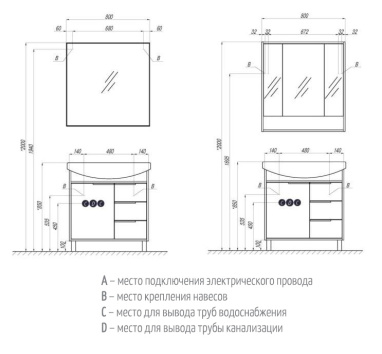 Комплект Тумба Моника New 65 (660х830х450) с раковиной (арт. 7065) Basic 65 (CS00071367)