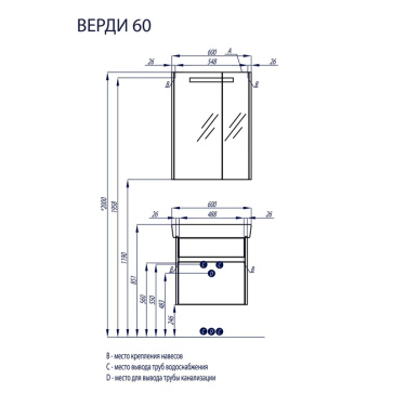 Комплект Тумба София 60 600х820х460 с раковиной Basic 60 (CS00079242)
