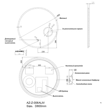 Зеркало AZARIO Alone Raggio 800х600 влагостойкое с подсветкой, сенсорный выключатель с функцией диммера (CS00078965)