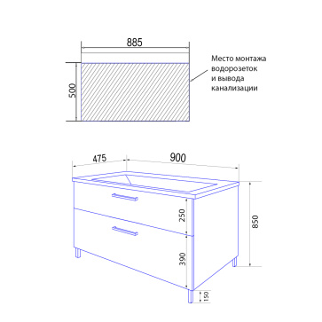 Комплект Тумба Azario Ника 90 Н 900х475х850 напольная, с раковиной Monte 90, белый глянцевый (CS00089956)