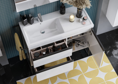 Тумба под раковину Roca DOMI 1000 мм, подвесная, левая, 2 ящика, белый глянец (A857477806)